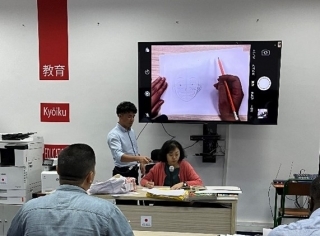 Après avoir expliqué le processus de la création de MANGA, Madame WADA Tomoe basée à Paris, dessinatrice japonaise de MANGA, a fait une démonstration de dessin de personnages du MANGA.